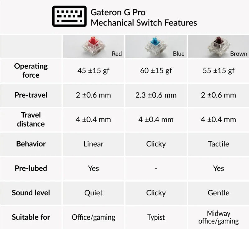 Engineered to maximize your productivity with most popular TKL layout. The gateron Mechanical switches offers the freedom to easily personalize your typing experience without soldering.