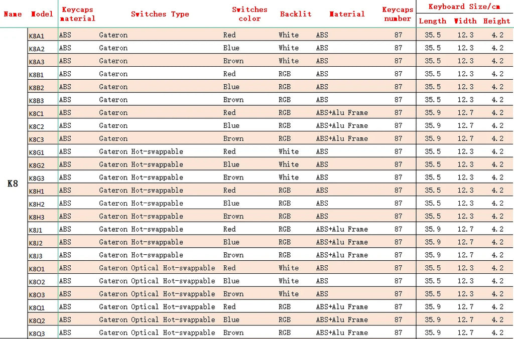 The K8 comes with a battery capacity of 4000mAh. The K8 can last up to 240 hours typing (backlight off).