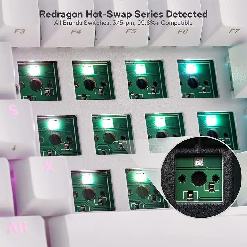 YES! TRUE HOT-SWAP - The transformative innovation with 99.8%+ switches compatible free-mod hot swappable Redragon keyboard is available now. The unique exclusive structure design of the socket makes the switch mounting easier and less wobbling.