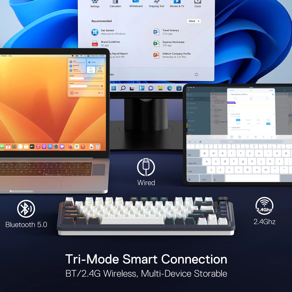 3-Mode Connection - Geared with Redragon advanced tri-mode connection technology, USB-C wired, BT 3.0/5.0 & 2.4Ghz wireless modes which make the user experience upgraded to another level in all fields.