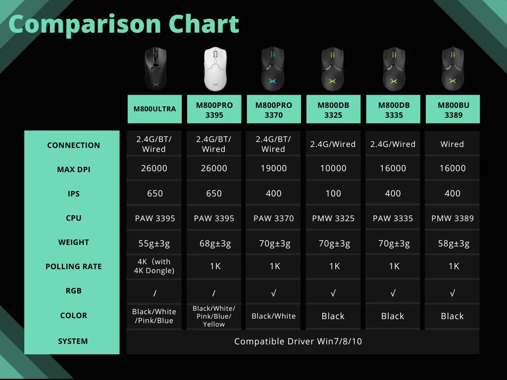 Polling Rate : 125-250-500-1000-2000-4000Hz (with 4K Dongle)