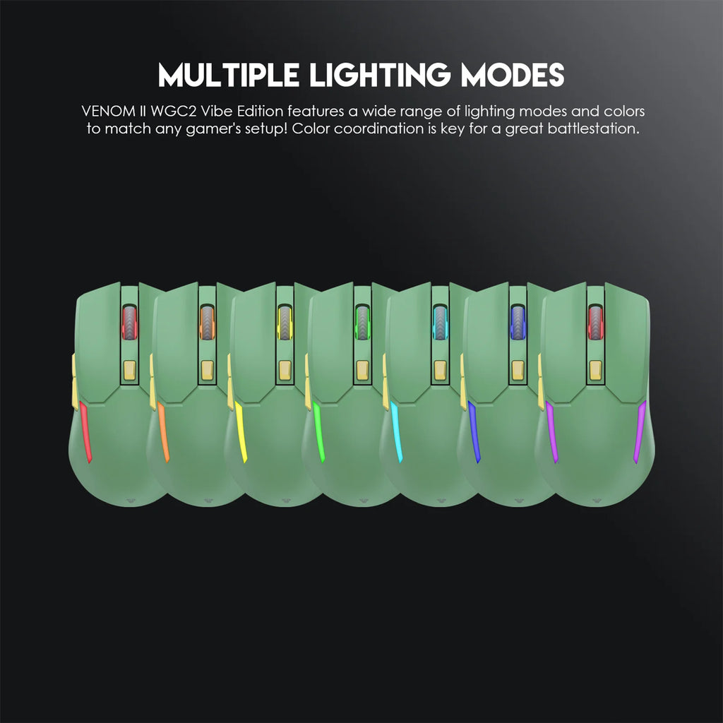 WGC2+ features a wide range of lighting modes and colors to match anygamer's setup! Color coordination is key for a great battlestation.