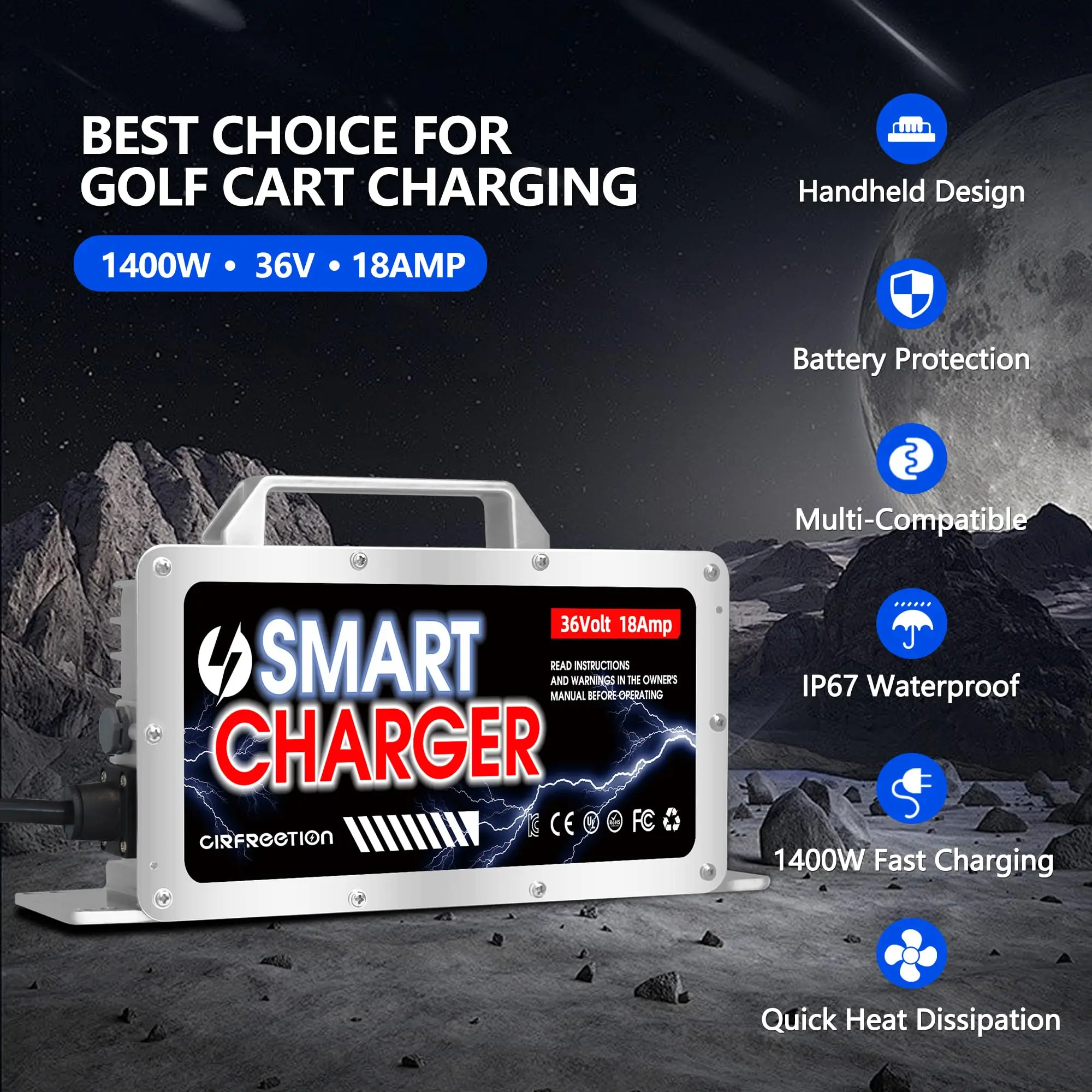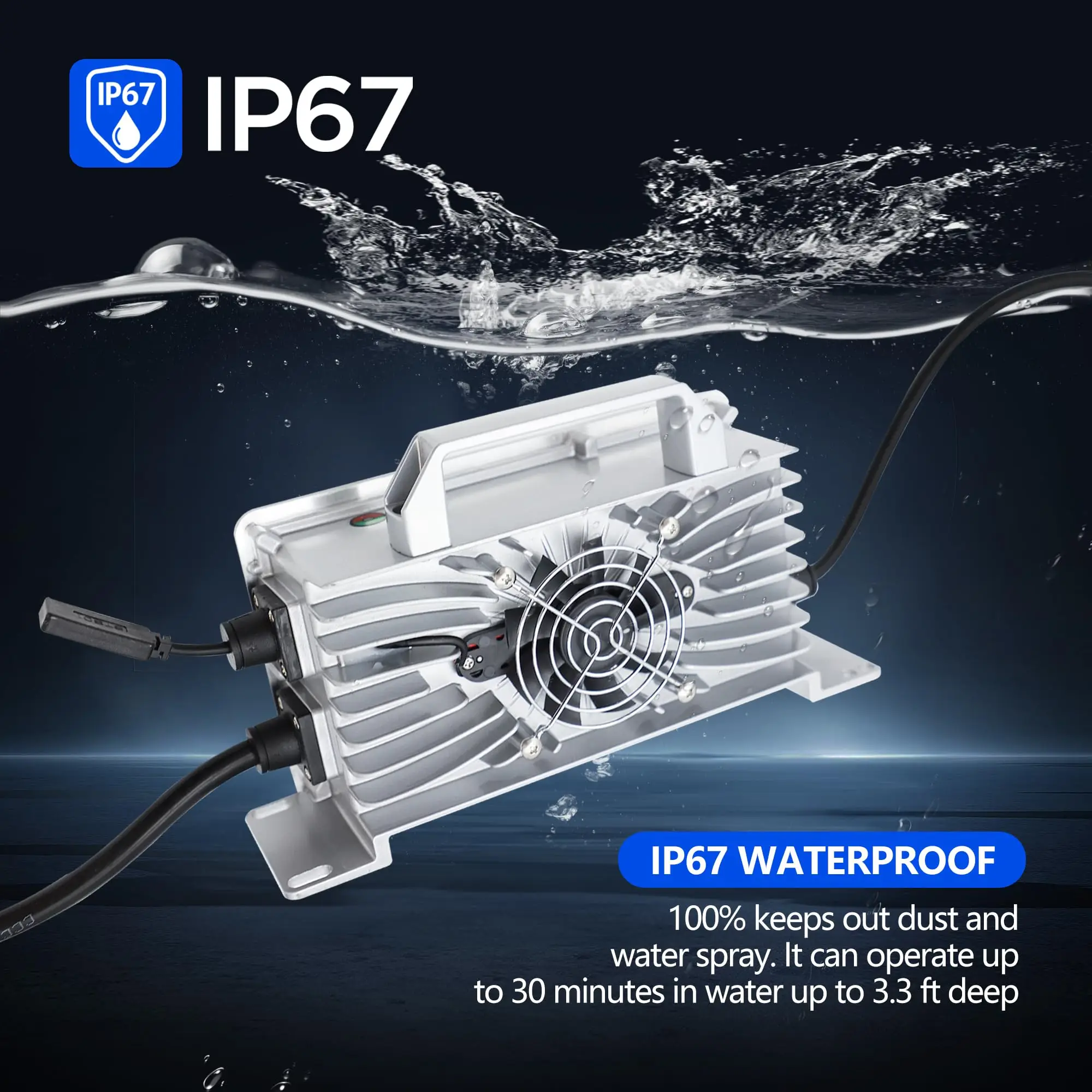 The 36 volt golf cart battery charger is IP67 rated and keeps out dust and water spray in the rain and other inclement weather. Improve the service life and performance of lead-acid batteries.