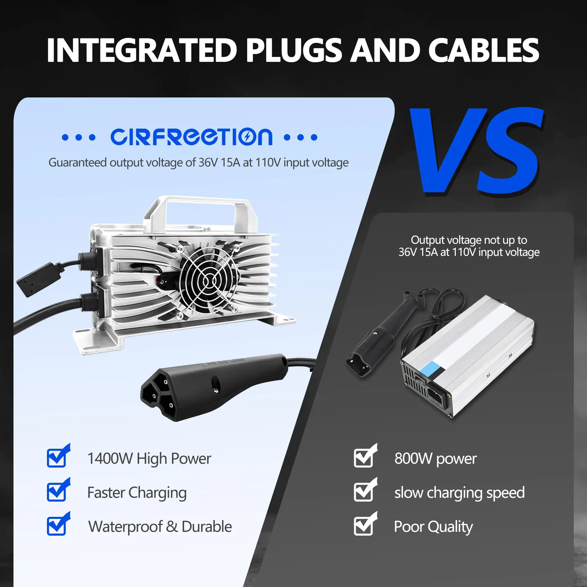 Portable handheld design for easy access. Golf cart charger with a 16-foot fast charging cable, and a longer charging cable to avoid tangling, which can effectively protect the charging safety.