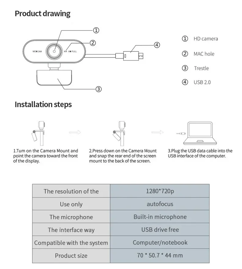 • Built-in Microphone :Equipped with a built-in microphone, this webcam allows for hands-free communication, making it ideal for video calls or online classes.