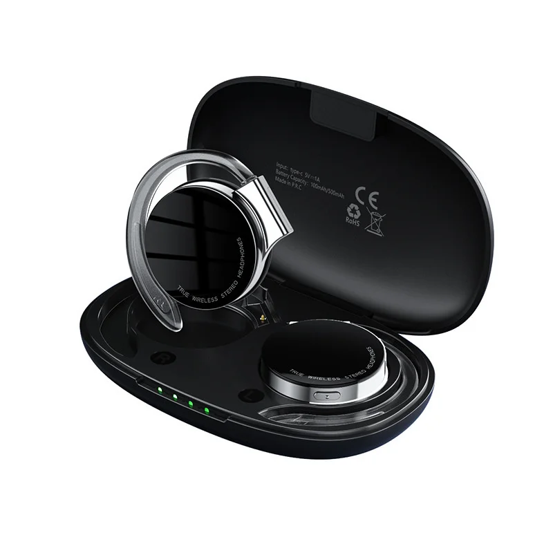 Sports mode/night running mode: click any 4 left and right buttons, the earhook automatically enters breathing mode, the light is on for 5 seconds, the breathing interval is 1 second, click 4 again to exit, listen to a song, pause, click any left and right buttons, the previous song/ Next song Lear-side button triple click (previous song)/Rear side button triple click (next song);