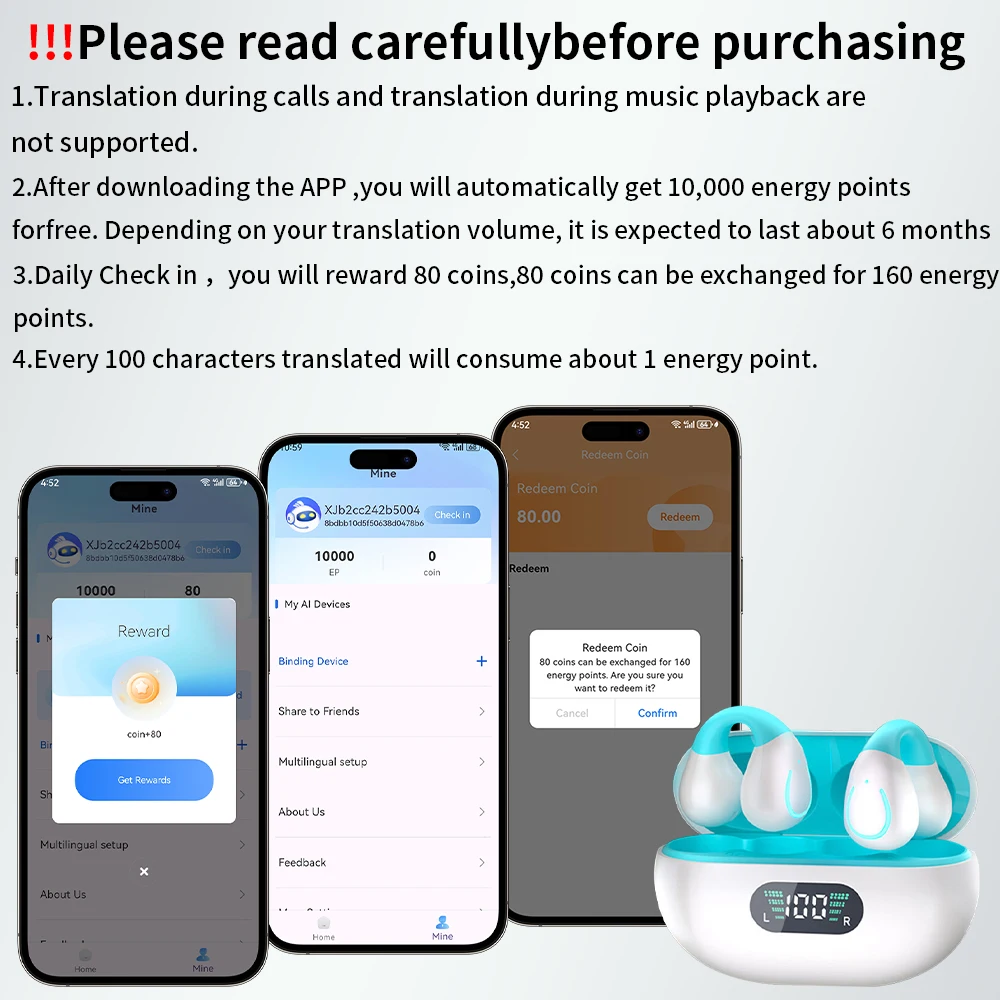 Languages Translation Headphones: AI Translator Earphone