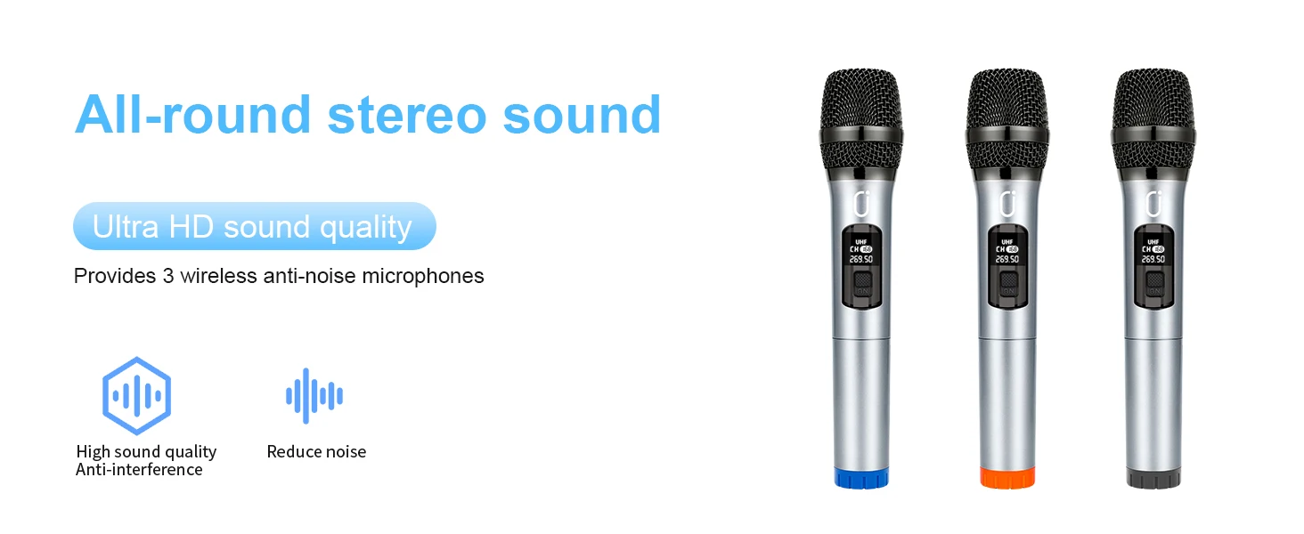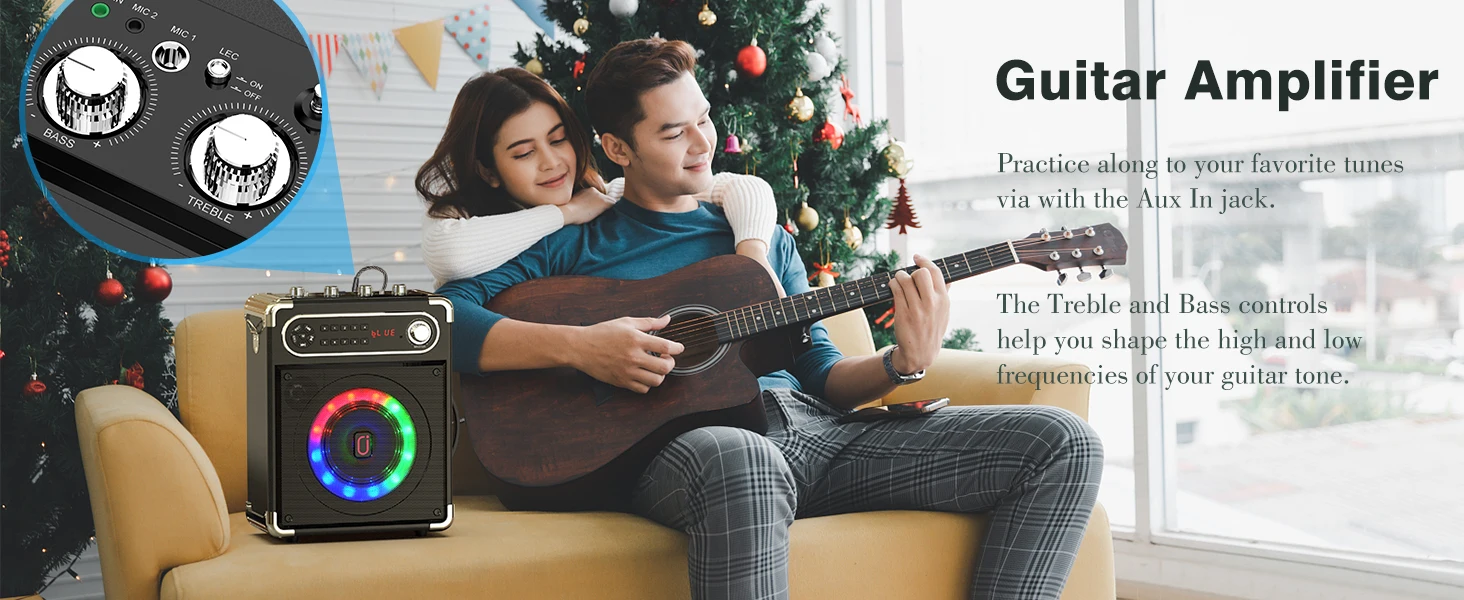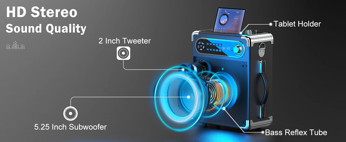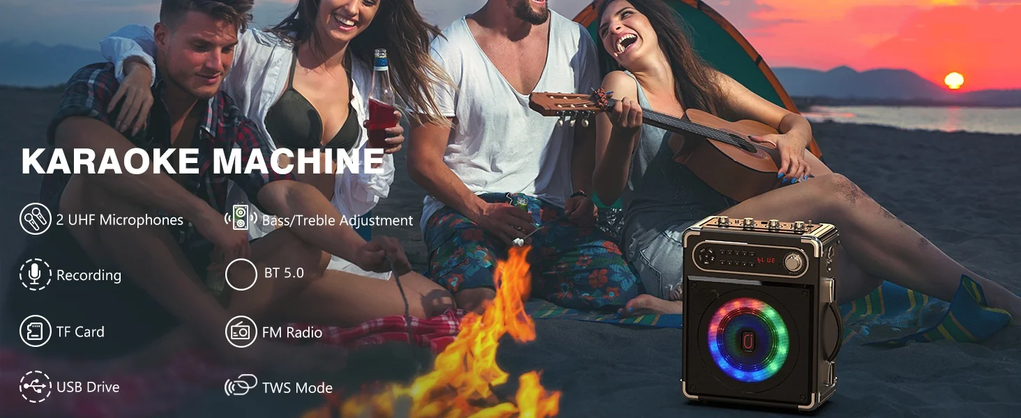 • Dual Microphone Karaoke Machine :Enjoy singing with friends and family with two wireless microphones included.