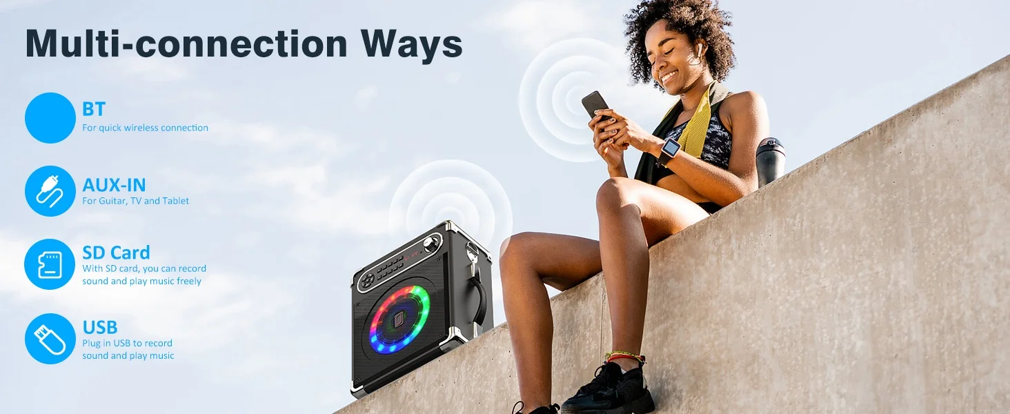 • Bluetooth PA Speaker :Connect your device to the speaker via Bluetooth for a seamless audio experience.