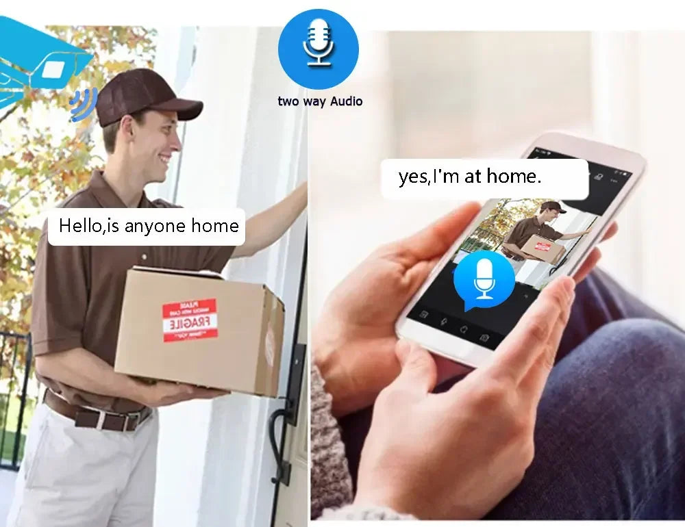 Two-way audio feature allows you to listen and speak through the camera.so you can speak to your elders, kids, and pets, to make sure they are doing well at home.