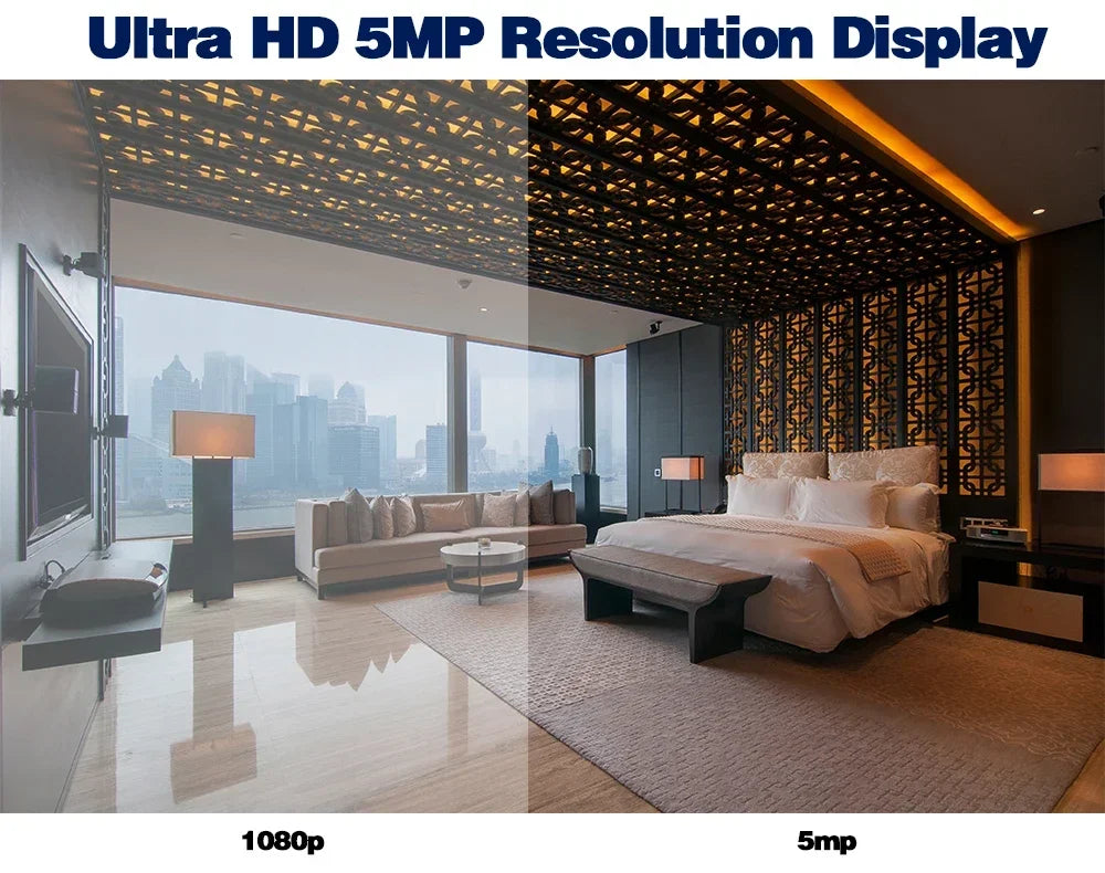 High-Definition interface output,Suport for online playback,Mobile remote,Multi-window display with 5MP Resolution.The angle will be more larger,and the image will be more clearer.
